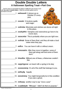 Halloween Vocabulary Spelling Writing with Double, Double Letters/Grades 6-8 begins with a two-part worksheet printables, one with 30 items and the second with 25. The activity focuses on words whose spellings include two sets, or even three sets, of double letters